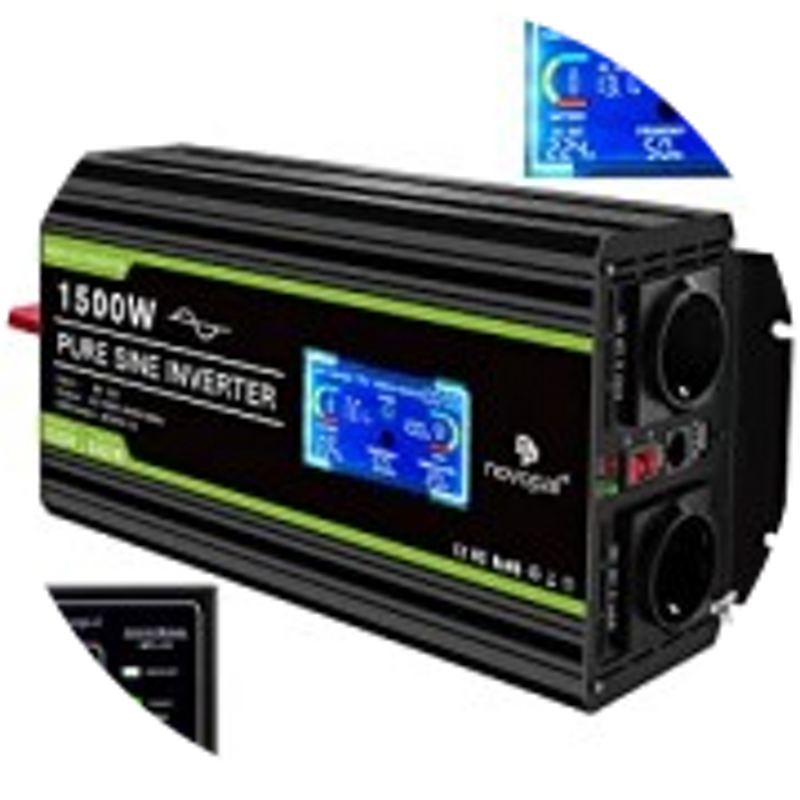 •  INVERTER DI ALIMENTAZIONE A ONDA SINUSOIDALE PURA: questo inverter di alimentazione fornisce alimentazione continua a onda sinusoidale pura da 1500 watt DC 12 volt a AC 220V / 240V continua (potenza di picco 3000 Watt).